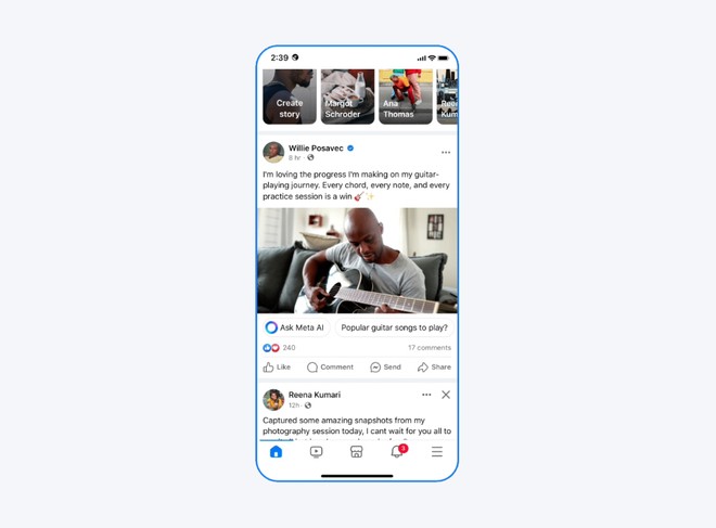 Também será possível encontrar o assistente virtual no feed de notícias do Facebook. Por exemplo, ao encontrar a publicação de uma pessoa tocando um instrumento musical, a inteligência artificial fornecerá sugestões de pesquisas relacionadas ao assunto, como “Músicas mais populares para tocar no violão” ou “Aprender a tocar acordes de jazz”.