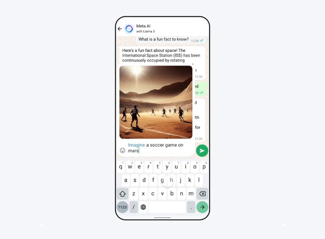 O Meta AI também está recebendo melhorias na geração de imagens para torná-la mais rápida. Usuários do WhatsApp e da versão web do assistente poderão utilizar o recurso “Imagine”, que permite criar imagens em tempo real a partir de texto. Conforme o usuário digita, a imagem é automaticamente gerada e exibida com base na descrição. Veja: