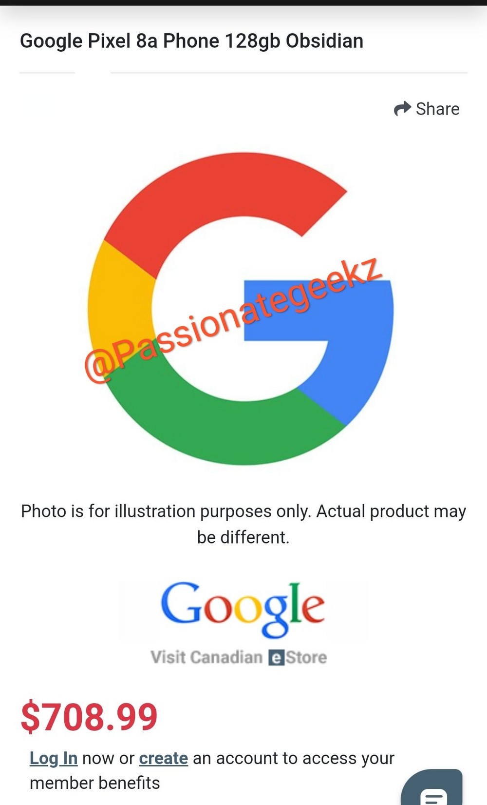 Capturas de tela de um site de varejo canadense mostram o Pixel 8a em seu modelo mais básico, com 128GB, por 709 dólares canadenses (CAD). A versão com 256GB sairia por 793 CAD. Valores quase que 200 CAD maiores do que o visto na geração passada, no anúncio do Pixel 7a – que chegou ao varejo do país por 599 CAD.