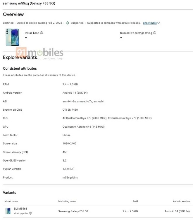 Além do Galaxy F55, é esperado que a Samsung oficialize o Galaxy M55 nas próximas semanas. O celular surgiu na plataforma de benchmark Geekbench com a plataforma Snadpragon 7 Gen 1 com GPU Adreno 644. Possivelmente, ambos irão compartilhar diversas especificações.