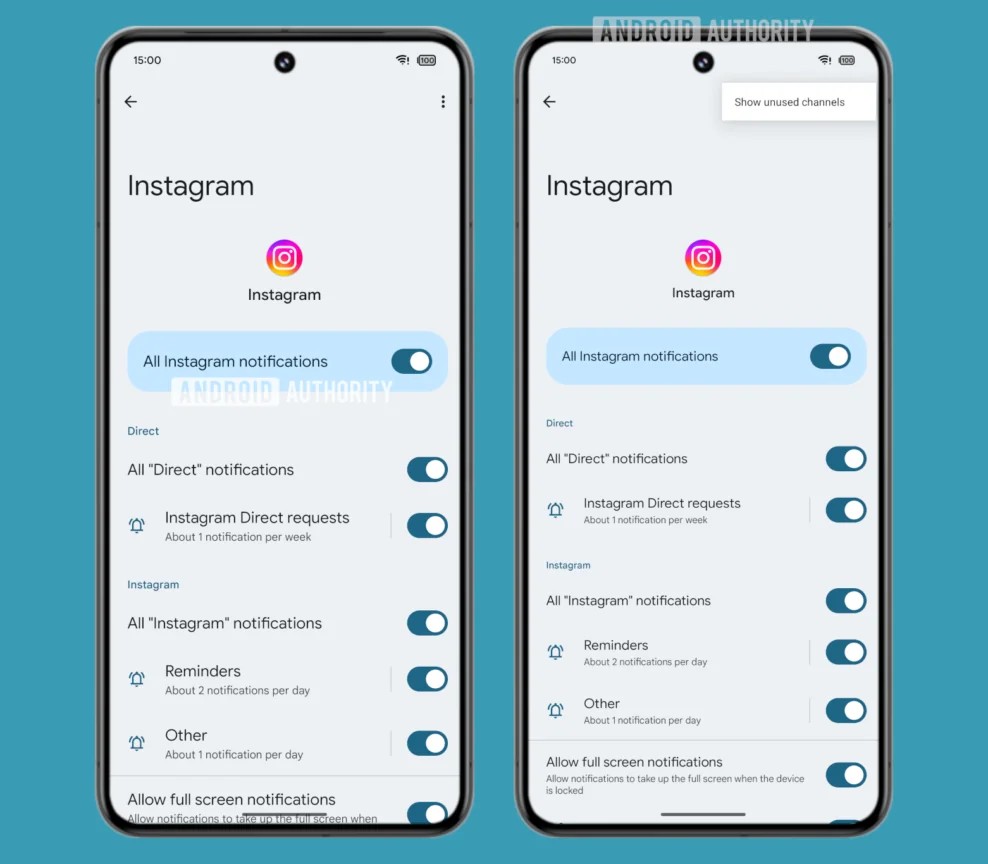 Mishaal Rahmaan, especialista em Android, explicou que com a atualização do Android 15 beta 1 é possível ativar um sinalizador de recurso oculto que conseguem ocultar notificações que não são utilizadas por aplicativos de forma padrão. Alguns aplicativos, como o Instagram, fazem diversos canais de notificações que mal são usadas.